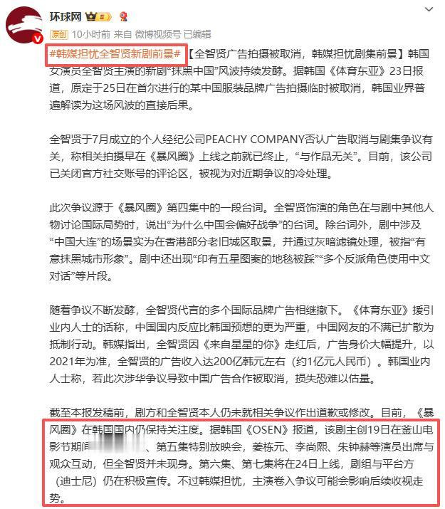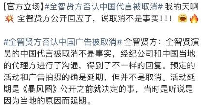 目前,多个品牌官方微博已删除全智贤所有相关博文,也撤下相关了广告内容。