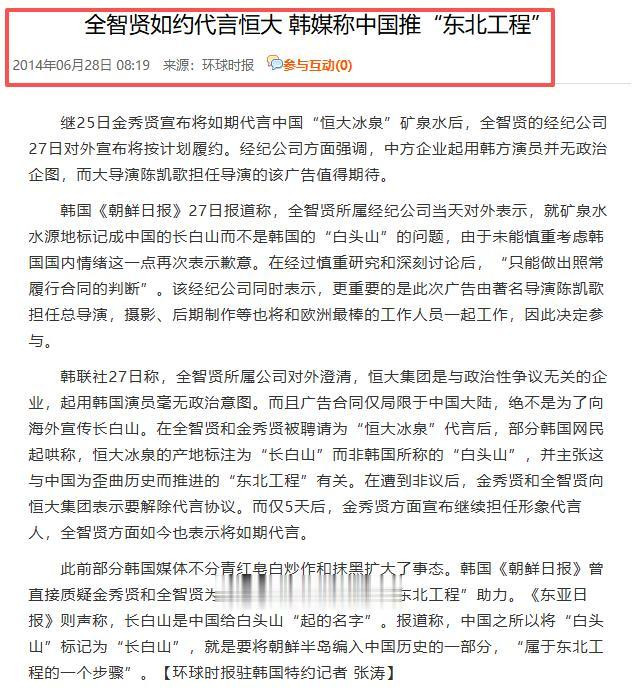 为了迎合所谓的“民族情绪”,全智贤不顾与恒大冰泉的合约约定,一度提出单方面解约。