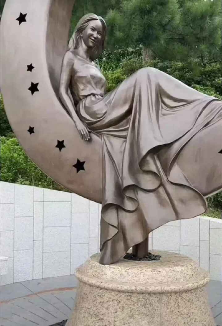 刘姓主播在高以翔的铜像前停下悼念,然后又让大家看了李玟的雕像。