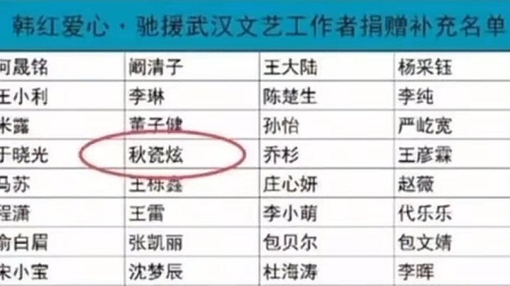 特殊时期,秋瓷炫不声不响的跟着韩红团队捐款,还亲力亲为去搬物资。